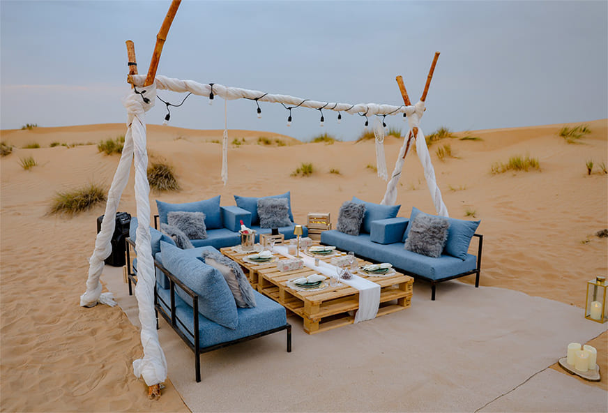 Enhanced Desert Safari experience with exclusive services of Quality Camp, participate in thrilling adventures and relax in comfortable Bedouin camp. Enjoy delicious Arabian Cuisines while enjoying live entertainments under starry sky.